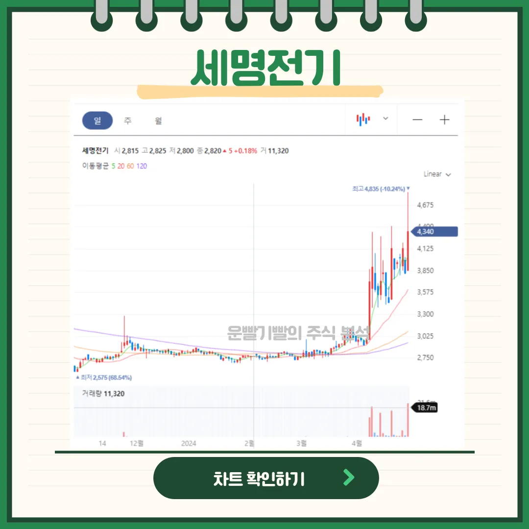 두 번째 전력설비 주식 종목 추천은 세명전기입니다.