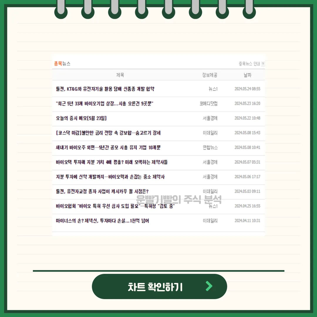• 재무 상태와 위험 요소: 툴젠의 연속된 영업 손실과 높은 연구개발 비용은 재무적 리스크를 증가시킵니다. 그러나 기술적 성공과 특허 수익화, 효율적인 자본 운용을 통해 장기적으로는 이러한 위험을 극복할 가능성도 존재합니다.