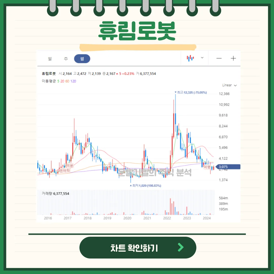 - 재무 상태와 수익성: 회사의 재무 보고서를 분석하여 매출, 이익, 부채 및 자본 구조 등을 살펴보아야 합니다. 특히, 휴림로봇의 경우, 최근 주가 변동성도 고려하여 회사의 재무 건전성을 평가할 필요가 있습니다.