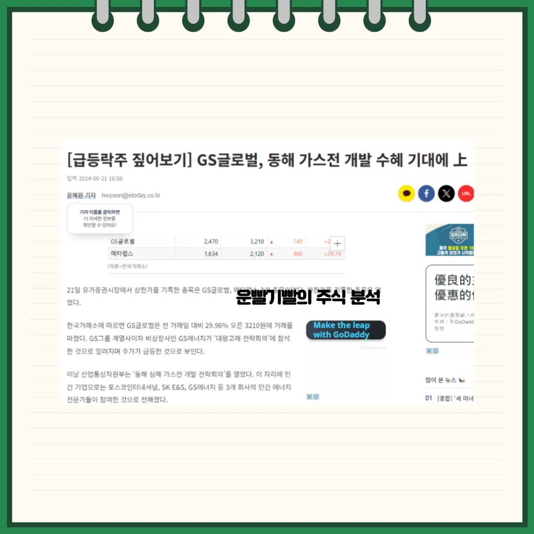 이번 주가 상승은 GS글로벌이 해외 자원개발에 적극적으로 투자하고 있는 점과 함께 동해 가스전 개발 프로젝트 참여 기대감이 반영된 결과로 해석됩니다. 시장에서는 GS글로벌의 이 같은 움직임이 중장기적인 성장 동력을 확보할 수 있는 계기가 될 것으로 보고 있으며, 이에 대한 투자자들의 관심이 높아지고 있는 상황입니다. 그러나, 증권 전문가들은 가스전 개발의 장기적 특성을 고려할 때, 단기적인 주가 급등에 따른 리스크도 유념해야 할 필요가 있다고 조언하고 있습니다.