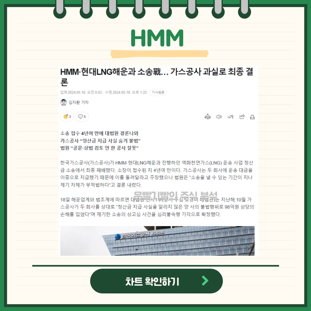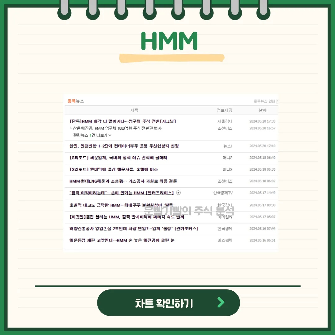 - 산업 변동성: 해운업계는 글로벌 경제 상황, 유가 변동, 무역 정책 등 여러 외부 요인에 크게 영향을 받습니다. 이러한 요인들이 HMM의 사업 운영과 수익성에 어떤 영향을 미칠 수 있는지 고려해야 합니다.